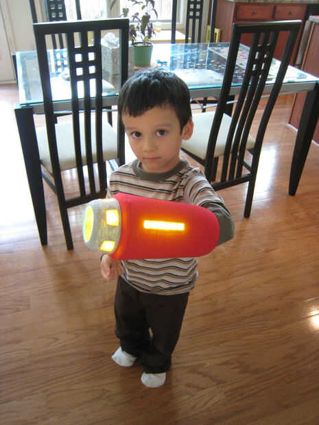 Me perforó un par de agujeros en el soporte de la viga principal y había instalado el LED y cables. Luego caliente pegué esta en la punta antes de instalar los pilotos de punta (lo hizo en este orden desde la viga principal no encajaría con la punta LED instalado). A continuación soldar los cables negro y rojo a la punta LED. Entonces esto empujó en la punta y me caliente pegué en su lugar. He acabado por el cableado hasta el principal haz y punta LED con sus resistencias y los cables que sean lo suficientemente largos para llegar a de la Proto Buster. Coloque la punta sobre el cuerpo principal del Buster, asegurándose de alinear las costuras en la tela. Caliente cuidadosamente pegamento en su lugar. Luego volcó y vierte un poco de pegamento caliente desde el otro lado para asegurarse de que no va a ninguna parte. Es lo unico a tener cuidado de no utilizar demasiado pegamento caliente o va a poner en las ventanas (que pasó un poco para mí).