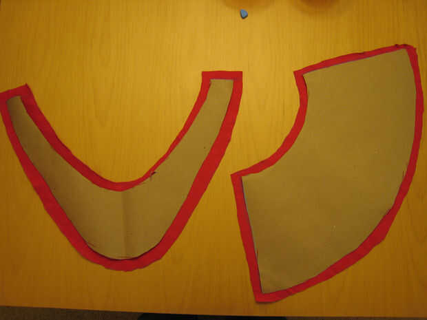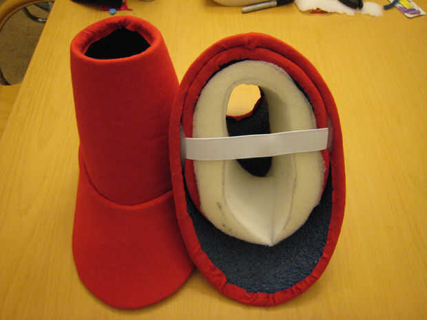 Tomé las plantillas y había marcado a mi tela. Dejando un montón de voladizo para envolver a la tela en el interior de la espuma. También marqué mis líneas de costura. Coser los extremos juntos y ponerlos en la espuma. Pegamento caliente arriba y abajo para acabar desollado las botas.