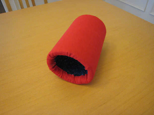 El bracer es una forma sencilla acabo de marcado directamente la espuma y recórtalo. Utiliza la espuma como una plantilla para cortar la tela. Coser los extremos juntos. Pegar la espuma para convertirlo en un cono y me cubre la espuma con la tela. Caliente pegar a la tela en el interior del tubo.
