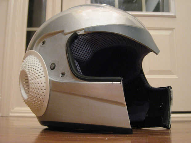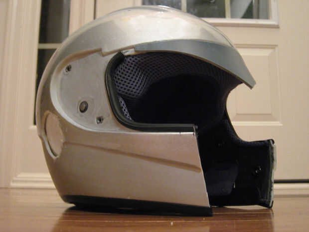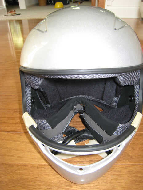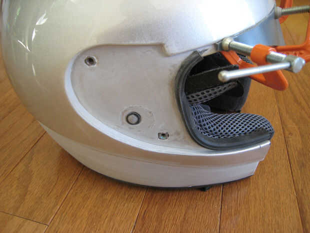 Lo primero que hice fue rasgar todos los accesorios de plástico pequeño en el casco, junto con la visera (salvando la pantalla para su uso posterior). Entonces enmascara la zona que quería cortar de manera que el casco cubre las mejillas, pero no la boca. Utilizando la dremel corte la pieza de boca. Arrancado todas las guarniciones innecesarias dentro de donde son las mejillas.