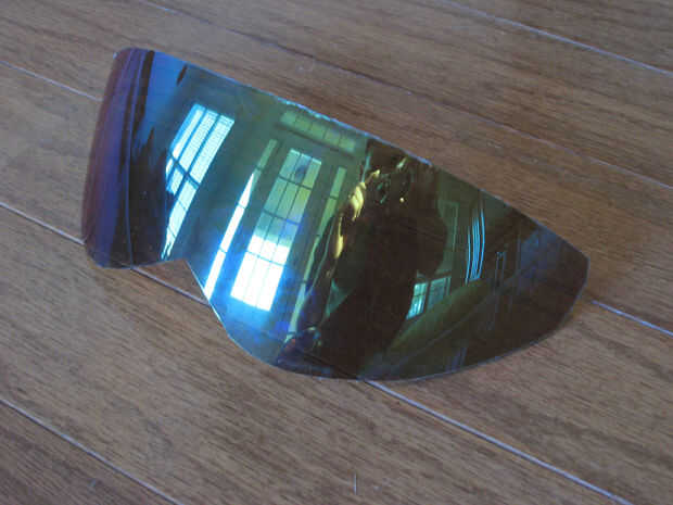 Quise usar el visor que viene con él como el visor que se correspondería con el traje. Así que usando un seco borra el marcador dibujé la forma de la pantalla había deseado, después cortar con el dremel. Esto entonces podría encajar en la calota del casco y el poliestireno detrás el pico de las viudas.