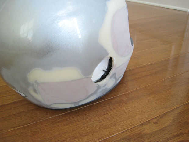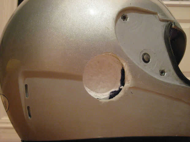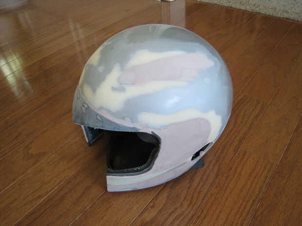 Utiliza papel de lija áspero hasta todas las áreas de la concha del casco que llena de bondo de coche. Auto capas de bondo en las grietas y zonas. Tuvo tres o cuatro aplicaciones para lograr que se haga. Sé que cubría esta all up with tela, pero no quería que cualquiera de las líneas para mostrar a través de sobre todo desde que estire a la tela hasta el casco.