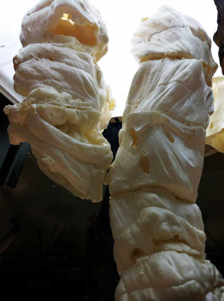 Cuando los dos bloques alcanzan su altura final, esperar 20 minutos para permitir que la espuma se seque. Rociar agua en la espuma con un pulverizador de botella de agua para acelerar el proceso de secado. Cuando esté seco, puede aflojar las abrazaderas de resorte y sacar el artefacto de la máquina. Use un raspador de limpieza para limpiar cualquier suciedad.