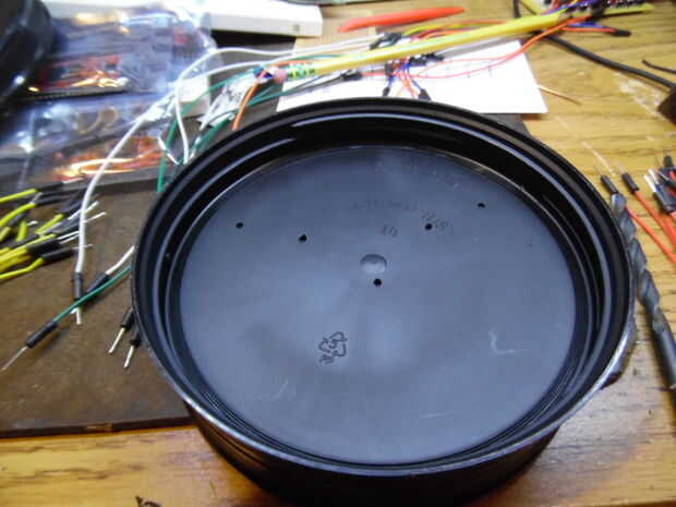 Utilicé una hoja de 1 1/4 de pulgada broca para taladrar los agujeros en las tapas. Cuidado asegurar bien la tapa y tómese su tiempo. Usar un taladro de batería de 12VDC y mantiene el gatillo en la posición lenta. no quiero la tapa para que se Haz roto ahora.