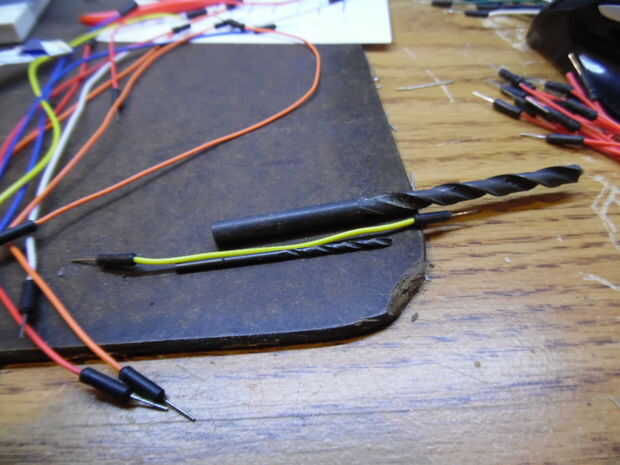 Después de tener las ranuras de alambre listas y acabadas (para mi gusto de todas formas), pasó a taladrar los orificios de montaje. Montado estas tapas a un trozo de tubo de pvc de 1 pulgada que añadí a mi estante de herramienta de banco electrónico también hecha de tubo de pvc.