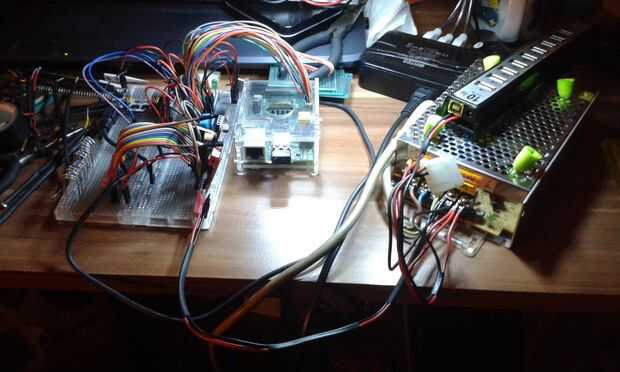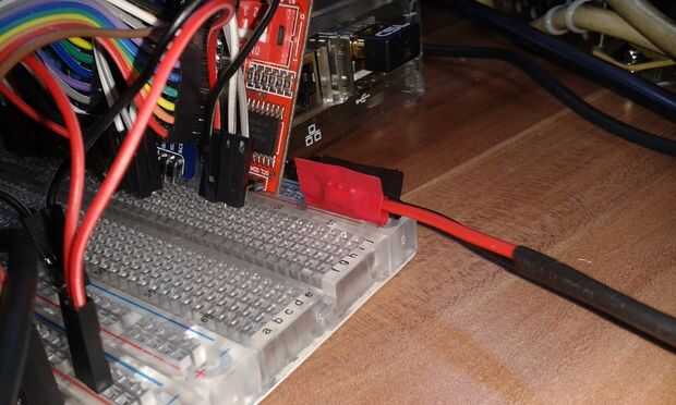 Como se puede ver en las fotos, poner los cables para alimentar el Hub USB y los cables nuevos para las breadboards, hace que las cosas van un poco apretados y dejan muy limitado espacio para evitar cortocircuitos. Porque supongo que para mover este lío todo mucho tiempo, tomé un poco más de cuidado para aislar las conexiones directamente en el adaptador de red de modo que aunque algo topa contra los conectores, no pueda nada corta a la fuente de alimentación. ;)