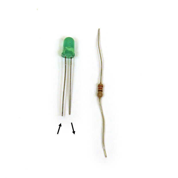 Corriente eléctrica siempre va desde alta tensión a tierra en un circuito. Algunos de los componentes sólo funcionan cuando la corriente pasa a través de ellos en una dirección (e incluso pueden resultar dañados por los cables hacia atrás). Como indican las primeras imágenes, LED debe conectarse para que la corriente fluye del ánodo (el cable más largo) al cátodo (el cable más corto). Resistencias no tienen direccionalidad, esto significa que puede voltear una resistencia de alrededor de un circuito y comporta exactamente igual.
