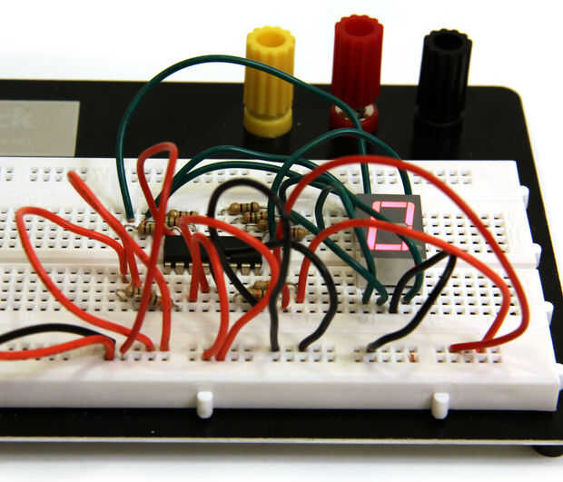 Puesto que hay tantas conexiones, es fácil hacer un pequeño error que hace que todo el proyecto a un mal funcionamiento. Si la pantalla no es iluminación en todo: Compruebe si todos sus componentes funcionan y se conectan en la orientación correcta. Si es una tontería en pero muestra: cuidadosamente controlar el esquema y las conexiones entre pernos a-g son correctas.