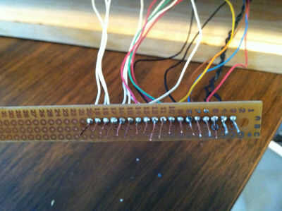 a continuación soldar los cables a su franja.  Que efectivamente llevar palitos de alambre por el agujero y ampliar en su protoboard.