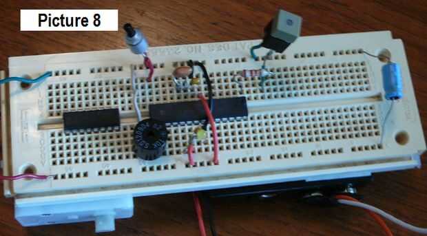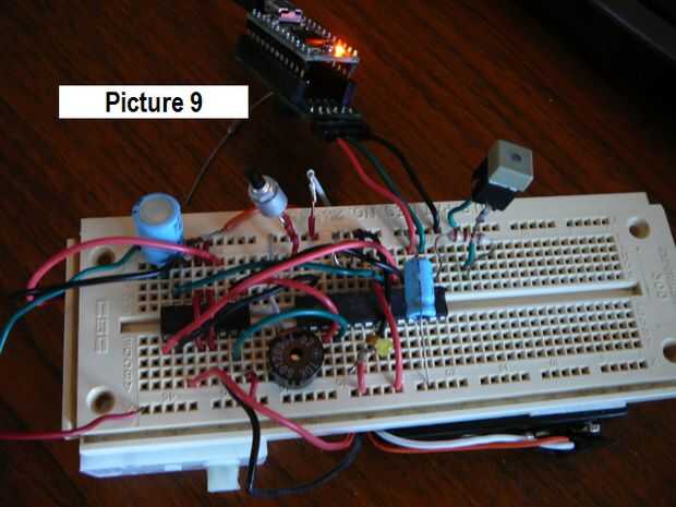 3 Arduino muestra el paso final: Cómo conectar el L293D puente H dual. Cuadro 9 muestra los circuitos terminados de Babuino – menos la fuente de alimentación. (Los ojos agudos pueden notar algunas pequeñas variaciones entre la fotografía y los esquemas. Los diagramas de esquema correcto y lo que usted debe seguir.) Aquí se muestra la conexión del puerto serial a USB adaptador.