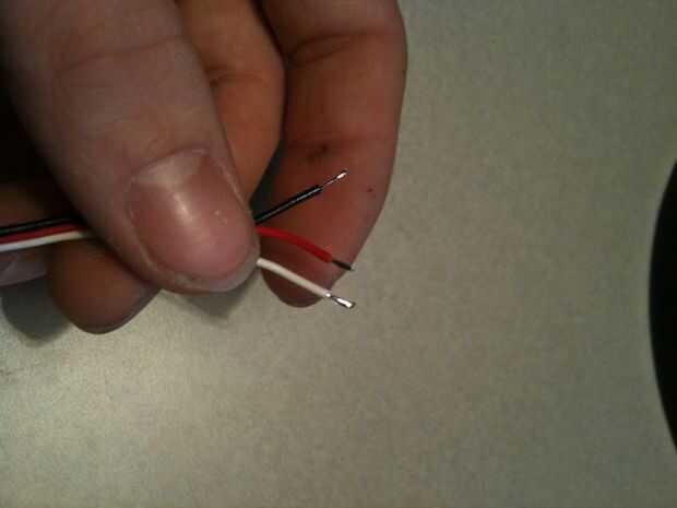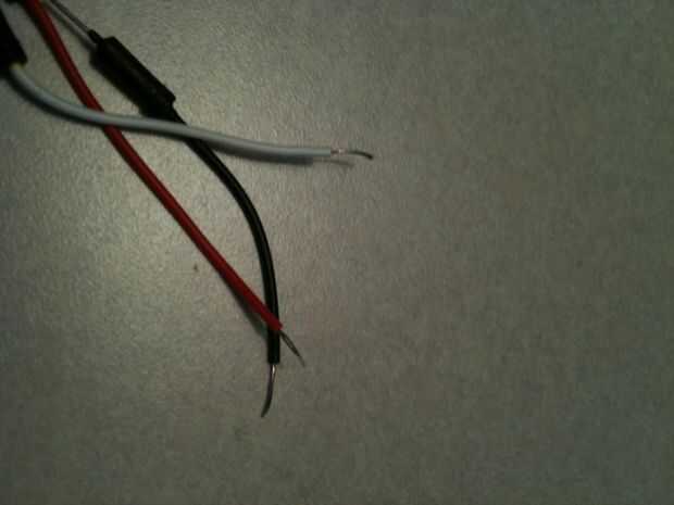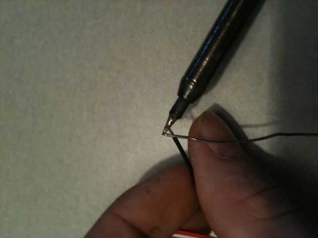 Ahora es el momento para estañar los cables. Esto significa que vas a capa que sus extremos desnudos en la soldadura. Toque el cable con la punta del soldador, luego toque la soldadura al cable. Darle unos segundos, luego verás la soldadura del derretimiento para el cable. Hacer esto a todos sus cables.