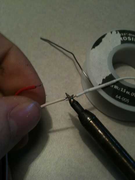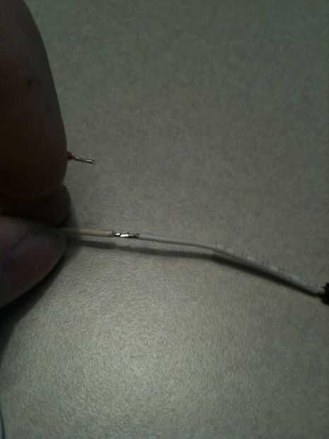 Hemos casi terminado ahora! Ahora deberás llevar un cable desde el servo y un cable de protoboard y soldarlos juntos. Esto es casi exactamente como estañar los cables salvo necesita dos cables y soldarlos juntos. Asegúrese de que los cables son rectos cuando se conectan, por lo que pueden mover el termo retráctil sobre la conexión cuando su acabado.