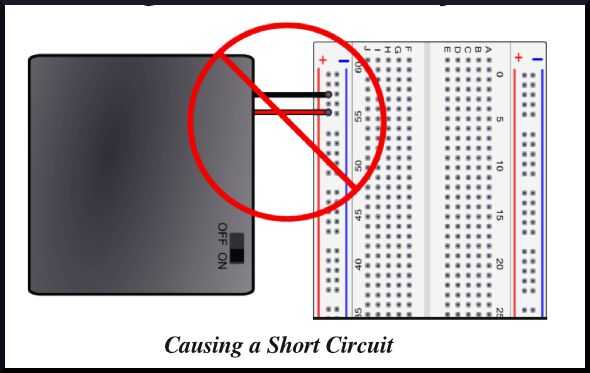 Crear un corto circuito significa que el poder o la corriente fluye de la batería incontrolable. Posiblemente se funde la batería o las baterías podrían pop. Sólo asegúrese de no conectar los cables de la batería al terminal mismo o asegúrese de que la la corriente no puede fluir a menos que primero pasa por una resistencia o un circuito integrado primero.