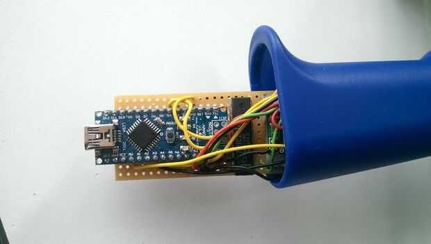 El circuito electrónico puede ser montado en un tablero de perf y debe encajar en el mango del dispositivo.
