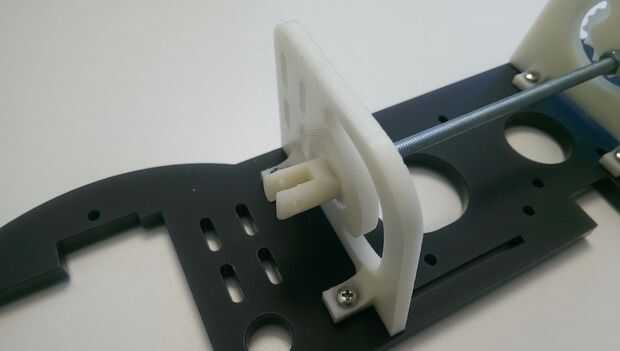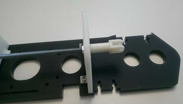 Cortar rosca M5 en el soporte del engranaje y el soporte del rodillo y atorníllelos en el extremo de la varilla. Alinee con la ranura está vertical y apriete. Comience con el soporte delantero primero!