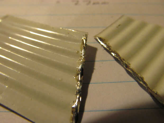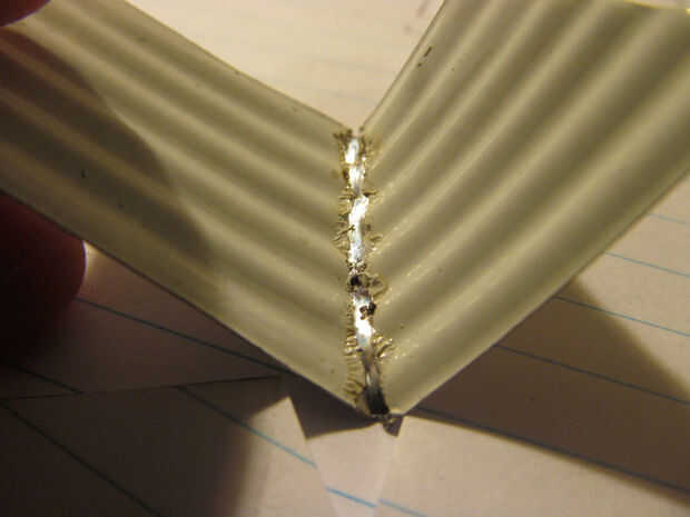 Mantener las piezas Unidas, mediante una pinza si es necesario y lo de la soldadura! Me parece que la forma más fácil es poner una gota de soldadura el soldador y virar los dos extremos juntos. Luego pase la plancha a lo largo de la esquina. Asegúrese de que la forma de la soldadura mixta es una curva agradable. Blobs significan que no ha hecho un buen porro.