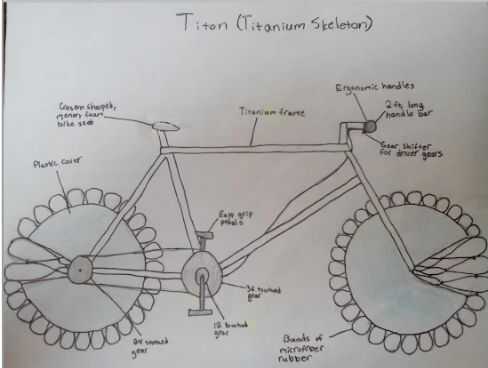 Mi usuario es una niña de 13 años que necesita una bicicleta para llevar a la escuela. Su viaje a la escuela está en una ciclopista pavimentada, en un parque y ella guarda sus pasos de bicicleta 5 metro. Por esta razón ella quiere que su bicicleta sea cómodo, ligero y capaz de subir colinas. La moto que producido se hace del titanio para que sea fácil de llevar para arriba y abajo. Tiene bandas de microfibra que están obligados a hacer una rueda que absorbe cualquier molestia. Tendrá una media luna en forma de asiento de espuma de memoria que hace que sea extra cómodo no sólo sentarse sino montar en. Los manillares son de dos pies de largo y se componen de material ergonómico para permitir el fácil agarre y mejor estabilidad.