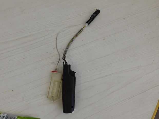 lo siento debo ha agregado más fotos pero su realmente simple. Un encendedor recargable actúa como el encendedor mientras el otro actúa como combustible. Simplemente afloje la perilla para que el combustible más ligero aumentar el tamaño de la llama! Luego fije a la ortesis de brazo.