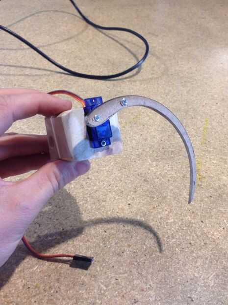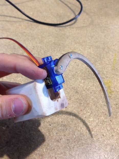 • Tomamos un pequeño tornillo para fijar el servo a la parte delantera de la madera de pino.