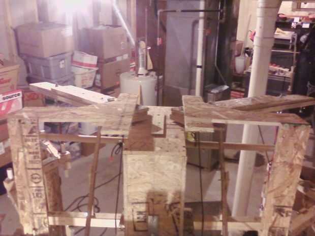 El soporte para la barra desplegable era cerca de 6 1/2 pulgadas de anchos, 8 1/4 pulgadas de largos y 2 1/2 pulgadas de alto. Esa Asamblea fue arreglada con trozos pequeños de madera cosidos juntos anidando tornillos para madera de 1":