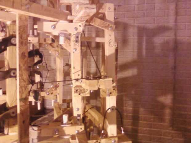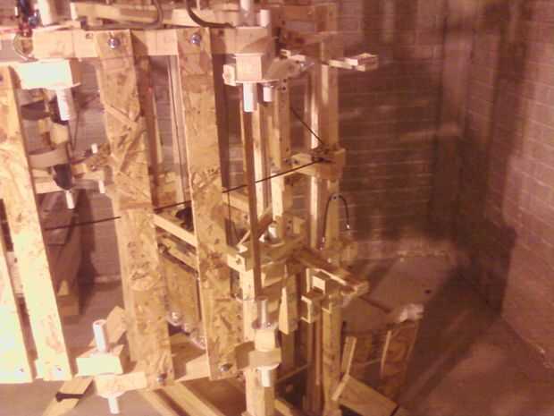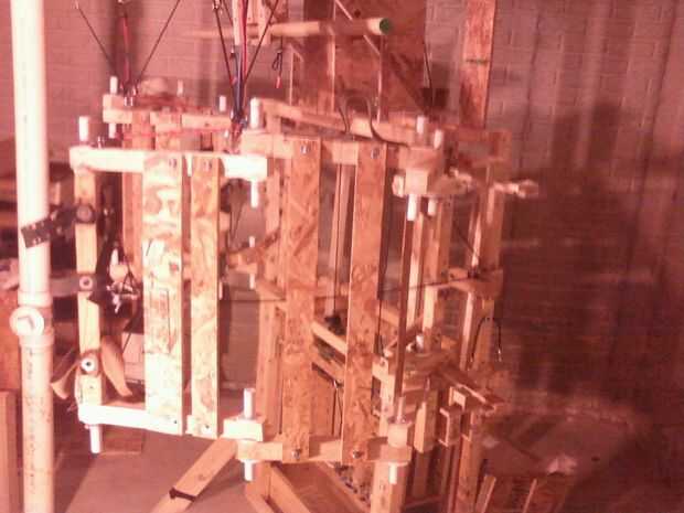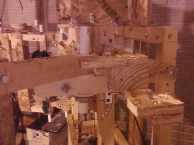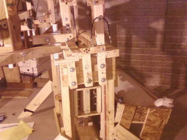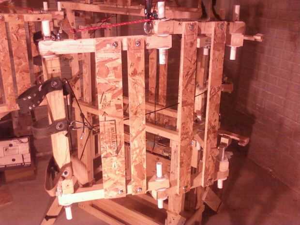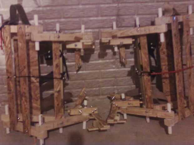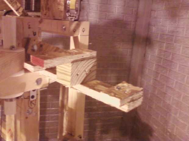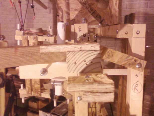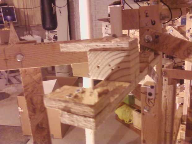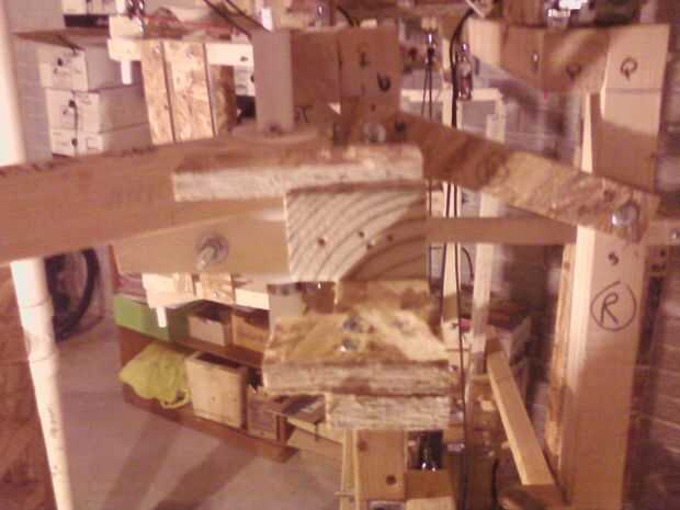 También tuve que encontrar la manera de hacer un giro del arco circular con bloques de madera (listones de 2 "x 2"). Superé esto mediante la creación de un movimiento de jackknife, que involucran los relacionados con las juntas de acoplamiento de tubo de PVC.