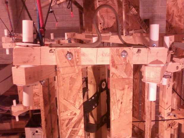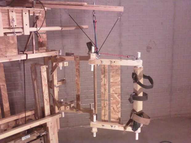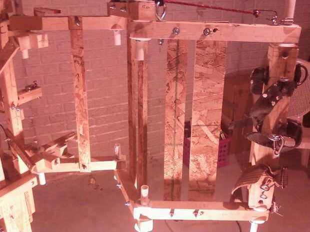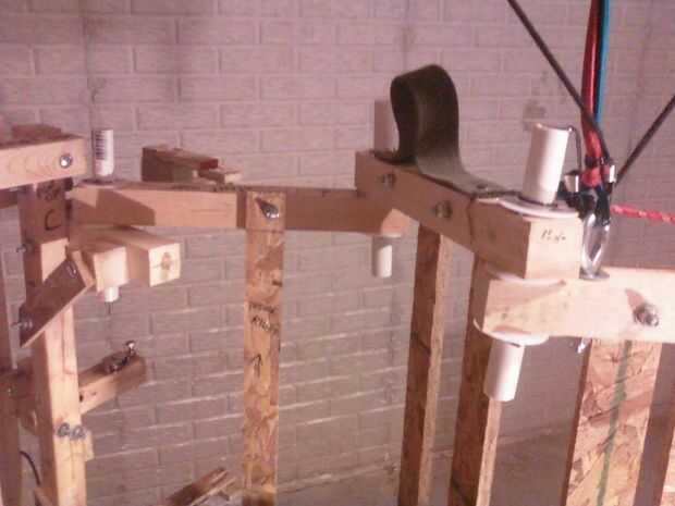 Los brazos de mariposa (en realidad tres bloques separados de madera) fueron Unidos junto con el uso de un tubo de PVC de 1/2 pulgada 7 1/2 pulgadas de largo (una broca de 7/8 fue utilizada para perforar los agujeros para que la actividad a cada lado de cada uno de los enlaces) con pasadores (3/32 X 1 ") en coordinación con el plástico las arandelas (2") fueron utilizadas así como un par de abrazaderas de manguera (1/2 – 29/32). El bloque más cercano a la máquina fue cerca de 13 1/2 pulgadas de largos, el bloque mediado era todavía unos 13 ½ pulgadas de largo, y el bloque más alejado de la deportista fue 15 ½ pulgadas de largo en la medida.