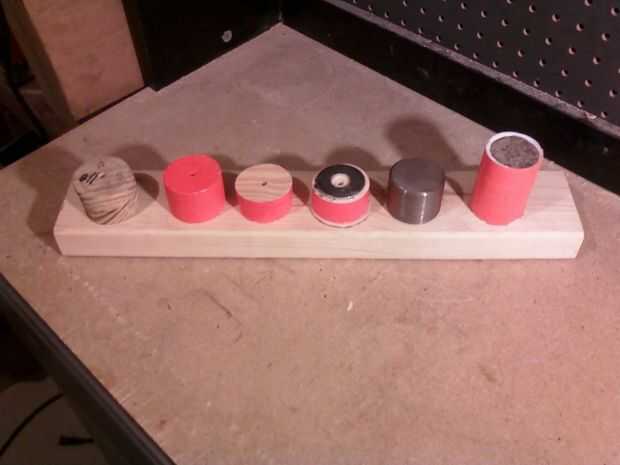 Tuve que encontrar la manera de representar el peso en el sistema de ejercicio sin necesidad de utilizar placas planas, mientras que está confinado en una pequeña cantidad de espacio (sin comprometer la adaptabilidad y portabilidad). Superé este representando peso como "tazas" de masa. Acabé tomando un 1 ½" tubo de la pipa del PVC y corte longitud sabio cerca de 2 10/16 pulgadas. Después utiliza una sierra del agujero 2" para cortar un círculo de plástico y luego pegado y pegadas a la parte inferior del tubo para conseguir la forma de la taza que deseaba. Después que el fondo de la taza, me llenó de cemento rápido y entonces cubierto en cinta naranja para lograr un color brillante para que un usuario podría ver un cambio notable en los puertos de vista como el inserto cayó por el peso de la caja. Mi deportista utiliza un contenedor (sí mismo pesa unos 25 kg) que puede contener hasta 24 insertos de cilindro (en lugar de usar placas de peso) para cambiar la cantidad de fuerza que ejerce un usuario para cada movimiento. Madera clavijas cerca de 4 1/4 pulgadas de largo se utilizan para suspender los Copa pesos en posiciones individuales en los tubos ellos mismos. Cuando no esté en uso, los pesos pueden colocarse en el contenedor de la rejilla para el almacenaje compacto.