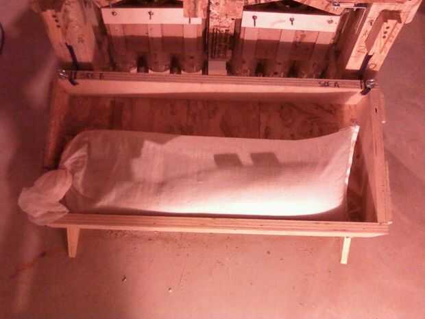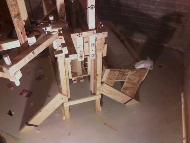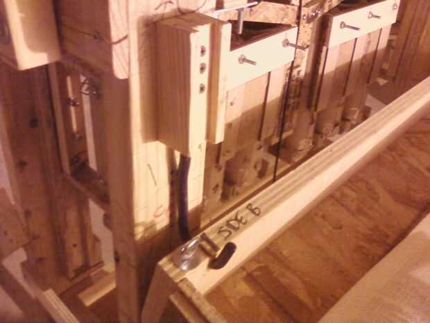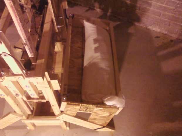 Un contrapeso situado en la parte posterior de la unidad era un envase creé que utiliza madera de 1 pulgada de espesor, 15 1/4 ancho, 32 ¾ pulgadas de largo y 5 pulgadas de alto. Tiene una bolsa de 50 lb de arena tubo para estabilizar la carga está trabajaba con en la parte delantera del aparato. Se basa en la parte posterior de las patas de apoyo de la deportista y se une a él con grandes ganchos. Se eleva del suelo entre 11 y 15 pulgadas de diagonal como resultado de mi diseño.