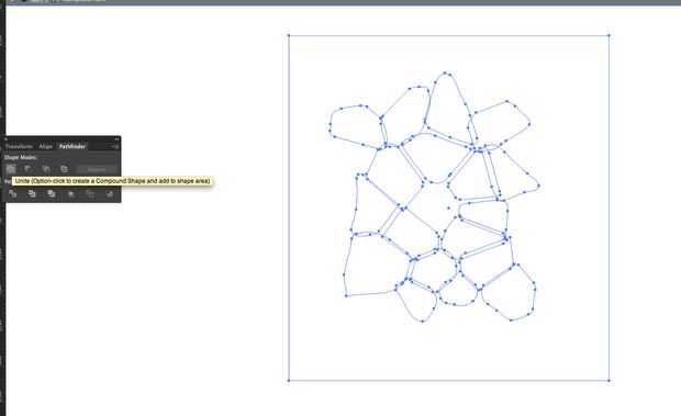 Comience moviendo todas las "plazas" por lo que se traslapan uno otro. Combinarlos todos, ellos hacen todos una forma mediante la herramienta Pathfinder/Unite.