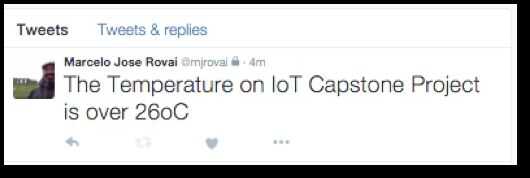 Una de las características de la IoT es interactuar con los usuarios automáticamente. Usted puede programar el IPC como un servidor web para enviar Tweets directamente o la función que tiene el sitio web de ThingSpeak (pero por supuesto en este último caso, solamente los mensajes "provocados" por un estado basado en los datos capturados y subidos será enviado).