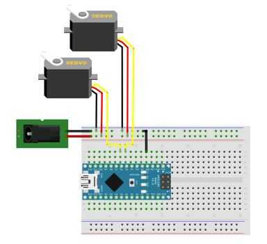 Para los motores servos continuadas 2 (SM-S4303R) fueron utilizados. Los servos se ejecutarán con una velocidad según el ancho de pulso recibido en la entrada de datos.