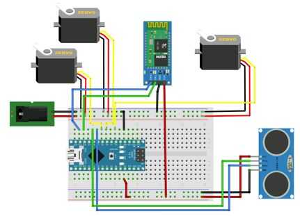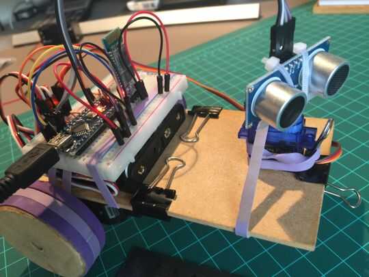 El Arduino completado de código (anterior + obstáculo evitación y la búsqueda de servo control) está disponible en los archivos:
