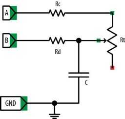 El siguiente paso era conseguir "datos de la intensidad de la luz" y una vez que no tenía un ADC (convertidor analógico a Digital) por lado, una buena aproximación fue conseguida mediante un técnica de carga y descarga del condensador. El "frambuesa Pi Cookbook" da la solución (tenga en cuenta que en su lugar el potenciómetro, un LDR puede ser utilizado):