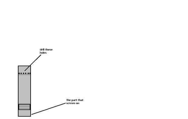 El tubo para el Thunder B Gernade es tipode como este, pero mina tiene agujeros en la parte superior del tubo. Básicamente si tienes un que ya tiene una tapa que se atornilla en el tubo y un cartucho de co2 se adapta y tiene cerca de 1 pulgada de espacio a la izquierda es genial. Primero corte la salida de la parte inferior (el lado sin la tapa) mantener esa pieza. A continuación perfore un agujero en la pieza que usted simplemente recortar tan grande como el nossel en la parte superior del co2. Luego lo dejó lo suficiente en el tubo que la cebada solo nossel asoma hacia fuera de la parte superior. Luego perfore orificios de 1/8 aproximadamente una pulgada desde la parte superior todo el camino alrededor del tubo.