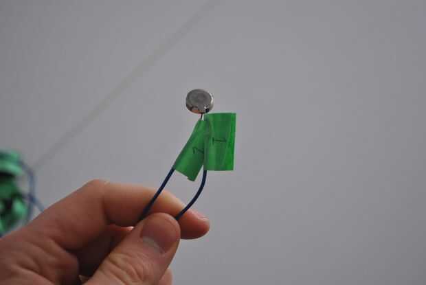 Usando las pinzas, corte 16 longitudes de 5 pies de alambre 14 calibre, pelando los extremos a medida que avanza; entonces tira con cuidado los cables que salen de cada motor de la vibración. Para cada motor, envolver tanto cable alrededor de un extremo de una longitud de 5 pies aparte de alambre (Asegúrese de que el otro extremo no está conectado a nada, estos fines se utilizarán para conectarse a la placa arduino). Asegúrese de cinta sobre las secciones peladas del alambre para evitar cortocircuitos en el circuito. Finalmente, pegue los dos cables juntos para evitar que se enreden con otros pares, no dude en etiquetarlos para evitar confusiones.