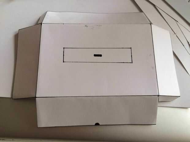 En het midden es een rechthoek getekent. DIT wordt de presencia van de iPhone oplader.