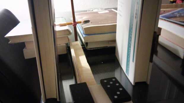 Coloque dos libros derecho e izquierdo de la rampa. Asegúrese de que los libros son la misma altura.