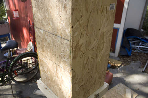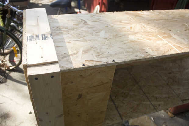 Comenzar colocando tus piezas hacia fuera como se vería una vez construida. Empecé por atornillar los laterales y kickboard juntos, guía de la pared del fondo como una rectitud de usarlo. Lo volcó y me hizo lo mismo con la pared posterior, sin embargo que necesitaba para compensación de altura llegar directamente. Último me convirtió fondos para arriba y para atornillar el tablero inferior. Después de eso intenté sujetar los bordes de las paredes junto con los tornillos. Era un poco de un desafío ya que este material es muy meticuloso sobre los orificios y en los bordes, lo conseguí trabajar por establecer tan bajos como iría el taladro y la perforación lentamente y con cuidado.