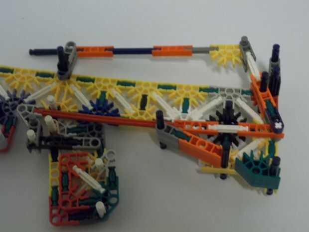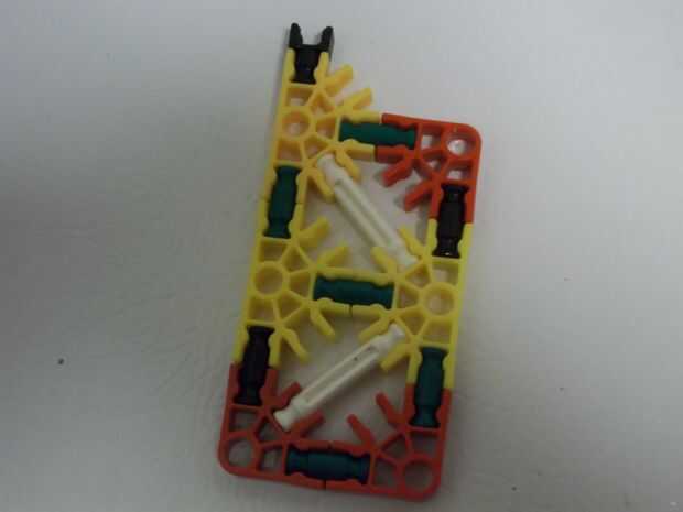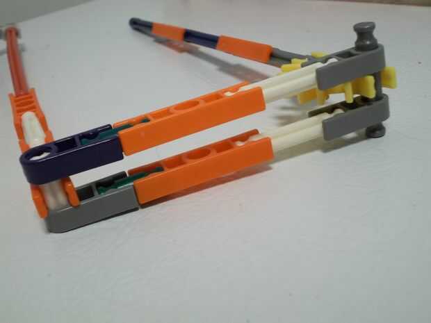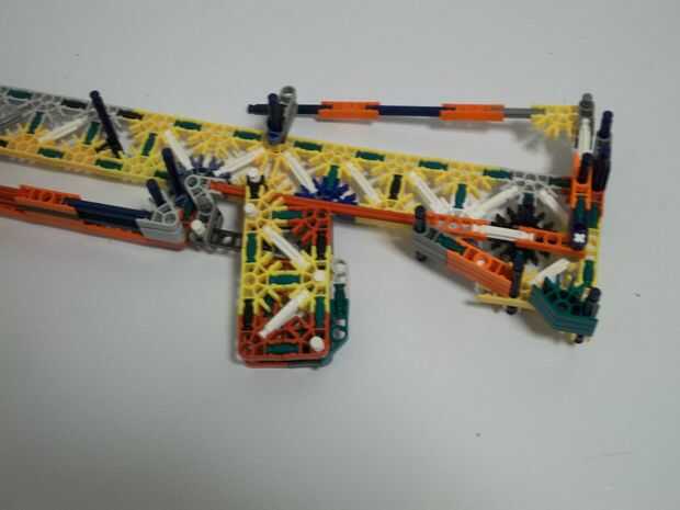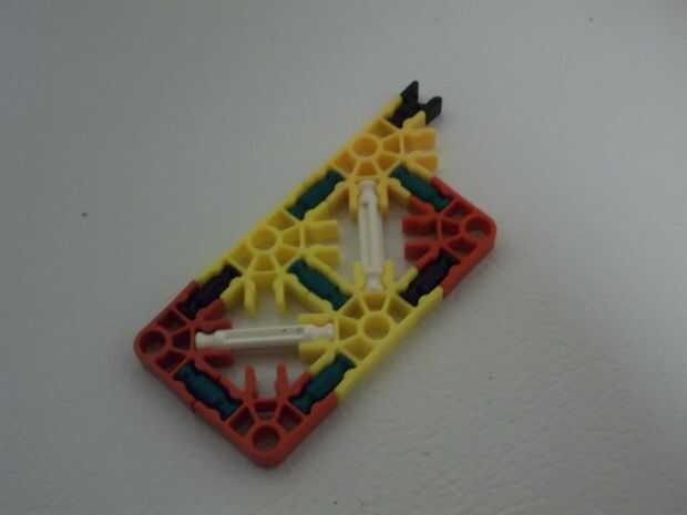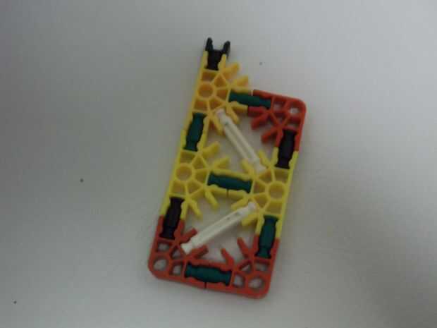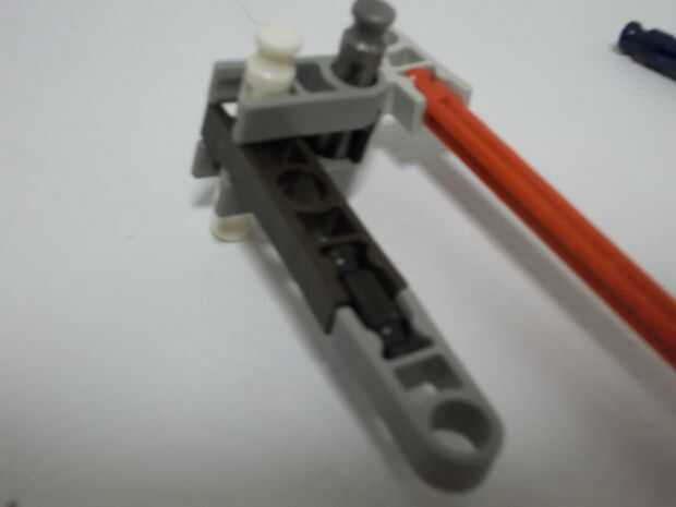 Now it's time to make the handle. Este paso consiste en unas pocas capas así que asegúrese de ver las fotos. Este mango se lleva a cabo mediante varillas bendy, pero es sólo porque la barra que lo conseguiría de la manera. El mango es todavía muy fuerte como se sentirá cuando haya terminado. El inicio de la mech gatillo requiere 1 longitud del conector tres barra de corte. Esto es porque no caben dentro de la pistola y se mueven sin adición de otra capa.