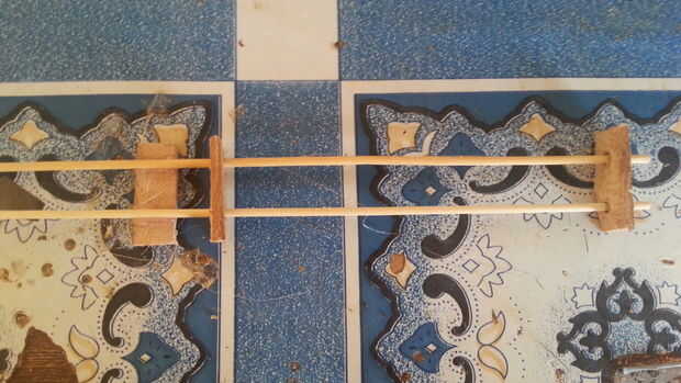 Primero tendrá que taladrar dos orificios en sus piezas de madera aproximadamente 1" de separación. el corte de la madera por lo que parece en la foto. Cortar también dos otros pedazos sobre la misma longitud. Después los dos pinchos en los agujeros de la madera y les espacio distancia como se muestra. Se utilizan para los pinchos de espacio primero. Luego pegar la pieza sin los agujeros de 8" del borde de los pinchos. Después de se enfríe, mueve las otras dos piezas de madera con orificios (que son los pinchos) juntos. Luego tomar la última pieza de madera de un pegamento que sobre las dos piezas de madera. Ahora tienes dos pinchos que se pegan, y tienes las piezas en el medio que se pueda deslizar.