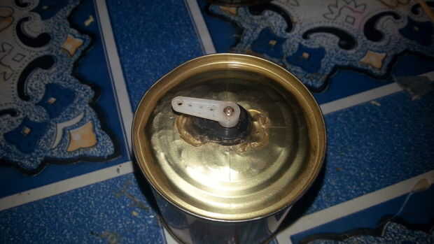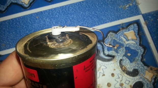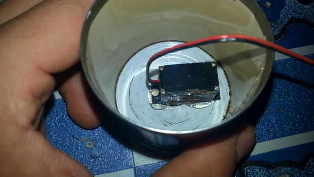 Ahora para la parte principal: el torno. Ya empecé el proyecto, por lo que estoy tomando fotos después ya pegado el servo en. Necesita perforar el orificio de tamaño adecuado para su servo y luego péguelo en (Asegúrese de que está centrada). Luego doblar un clip para formar un lazo como se muestra y medir en su poder para iniciar la instalación en el servo. usted debe tomar un buen vistazo a servo final y lazo y la hacen suyo sólo gusta, pero medido a su poder.