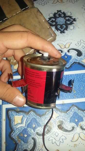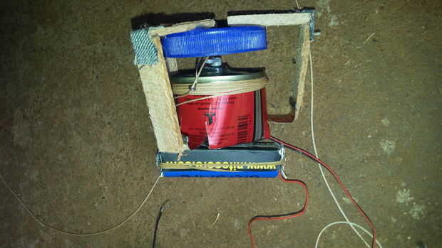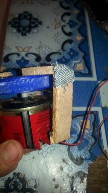 Después de completar el bucle, corte el fondo de la lata y doblar como se muestra. Luego cortar y pegar tres piezas de madera como se muestra. La parte superior de la madera debe ser de 1-2" sobre la parte superior de la lata y 1/2" lejos del lado de la lata. Luego tomar una tapa de plástico o trozo de plástico plano y perfore un pequeño agujero uno del centro. Luego pegar el plástico por lo que el agujero quede centrado encima de la media del servo. Para pegar las piezas de tres de madera, debe usar un trozo de paño o cartón para que sea más fuerte. La caja de la batería es muy sencilla, sólo traza la batería a la cartulina y cortar como se muestra en la imagen. Pegamento en la parte inferior de la lata. La batería se mantiene en una banda de caucho, y también los cables. No hago un interruptor porque si usted quiere invertir el motor, tienes que invertir los cables. Así que usted sólo pegar el extremo pelado del alambre debajo de la banda de goma para que toque el terminal. El gancho de la garra entra la pistola como se muestra en la imagen. El video muestra el cabrestante en acción. Si te gusta este proyecto, por favor voten por ella en el concurso! Gracias por leerme.