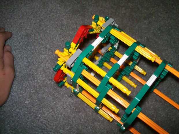 esta es una de las partes que necesita ser modificado, pero... donde nunca hay un agujero del conector verde, coloque una barra amarilla a través de ella con un solo conector gris a su lado... esto sólo se aplica a las primeras dos hileras.