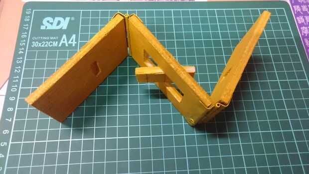 Incluso el prototipo se puede demostrar que esto--tres piezas de madera contrachapada de 9 x 6 cm - pueden contener la pila de 2,5 kilogramos (como el peso de la batería es bien distribuido en la cima de la tabla de prototipo). Bueno, la pieza diagonal y la pieza central vertical hacen un buen soporte. Era duda hasta que termino mi prototipo y asombrado por su estabilidad.
