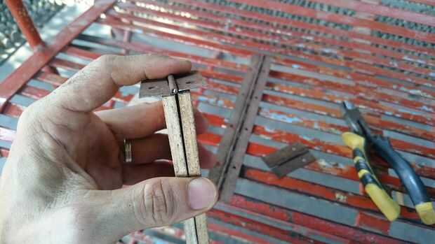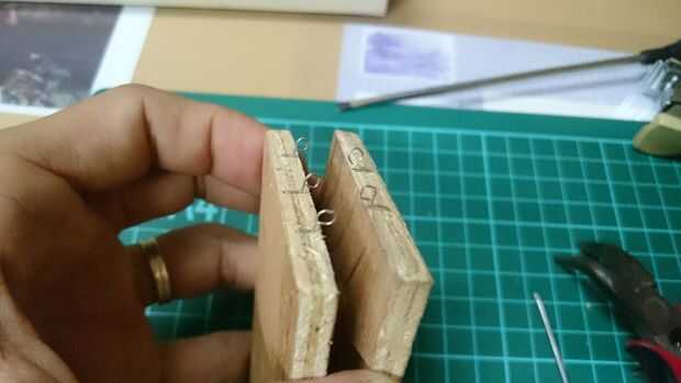 Al principio estaba en problemas para encontrar las bisagras pequeñas para este proyecto. Luego he intentado hacer mis propio bisagras con las grapas y un clavo como la varilla del centro como se puede ver en las fotos. Funciona, sólo que no es que rígida debido a las grapas muy finas. Mirando a su alrededor encontró las bisagras viejas delgadas, ya que es demasiado ancha para mi madera contrachapada fina. Había doblado la placa pero no se muestra aquí. Tiempo y me olvidé de tomar la foto de ella (^_^ ") pero se puede ver el resultado en el siguiente paso.