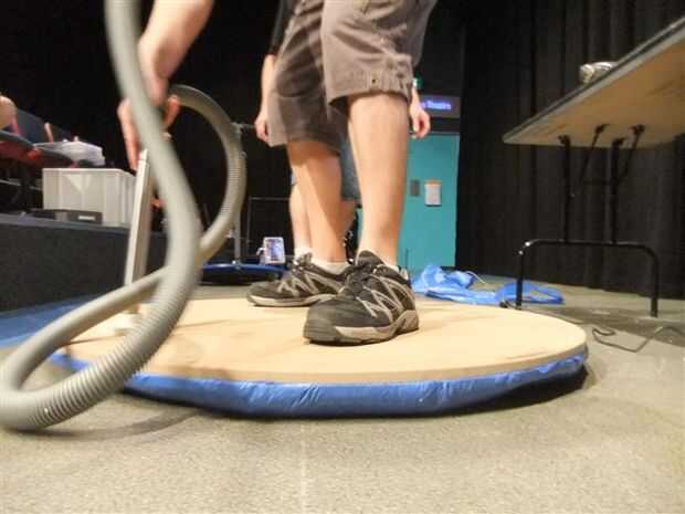 Esto es cómo usted puede hacer una plataforma de estilo flotante Hover fácilmente y barato. El cuerpo principal de la unidad está hecho de MDF (Craftwood) y una lona y usa una aspiradora de potencia ventilador portable de la batería para proporcionar el aire.