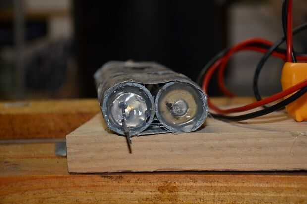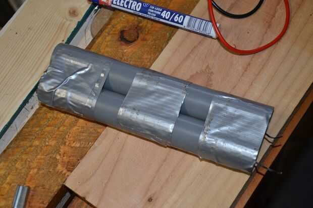 Sobre la batería usé la batería de un taladro viejo. Cuando lo abres encuentras 10 batería 1.2V 1.8A. Es un acuerdo realmente bueno para nosotros! Lo pongo en 2two pequeña parte del tubo de pvc, vendido de cable de dos piezas en + un - y glu todo para no tener ningún cortocircuito.