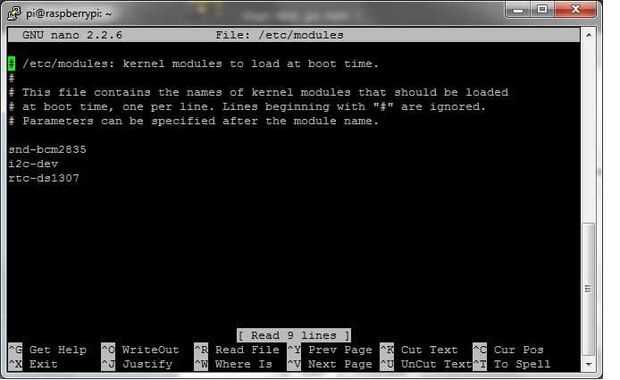 El Raspberry Pi también necesita el siguiente módulo I2c para ser cargado en el arranque