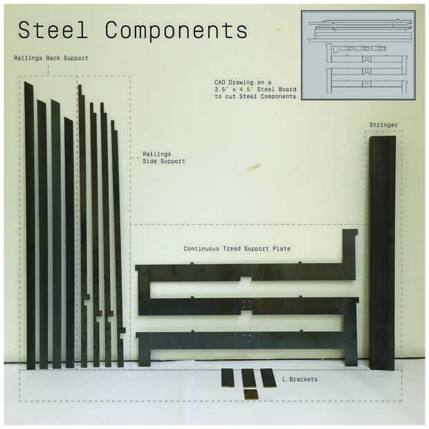 Hemos construido un prototipo de 1 a 1 con estándar 3' ancho x 1' x 1" profundo espesor peldaños con una subida de 6".