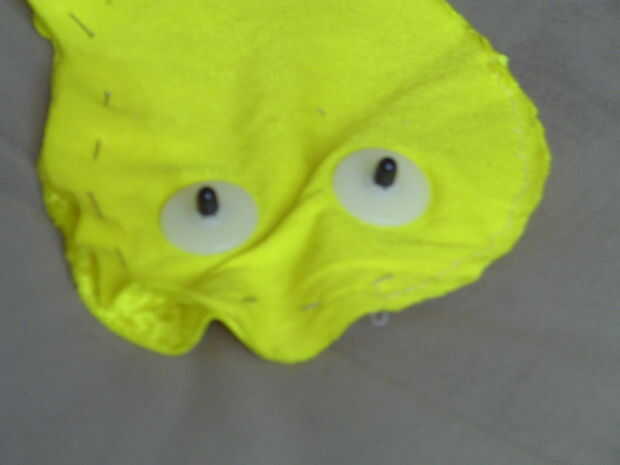 Corte pequeñas ranuras donde quieres que los ojos, luego inserte las clavijas de los ojos en las ranuras. Asegúrese de que el ojo real pasa hacia fuera en la parte difusa, luego coloque la lavadora en la clavija. Empuje como usted puede para asegurarse de que está apretado.